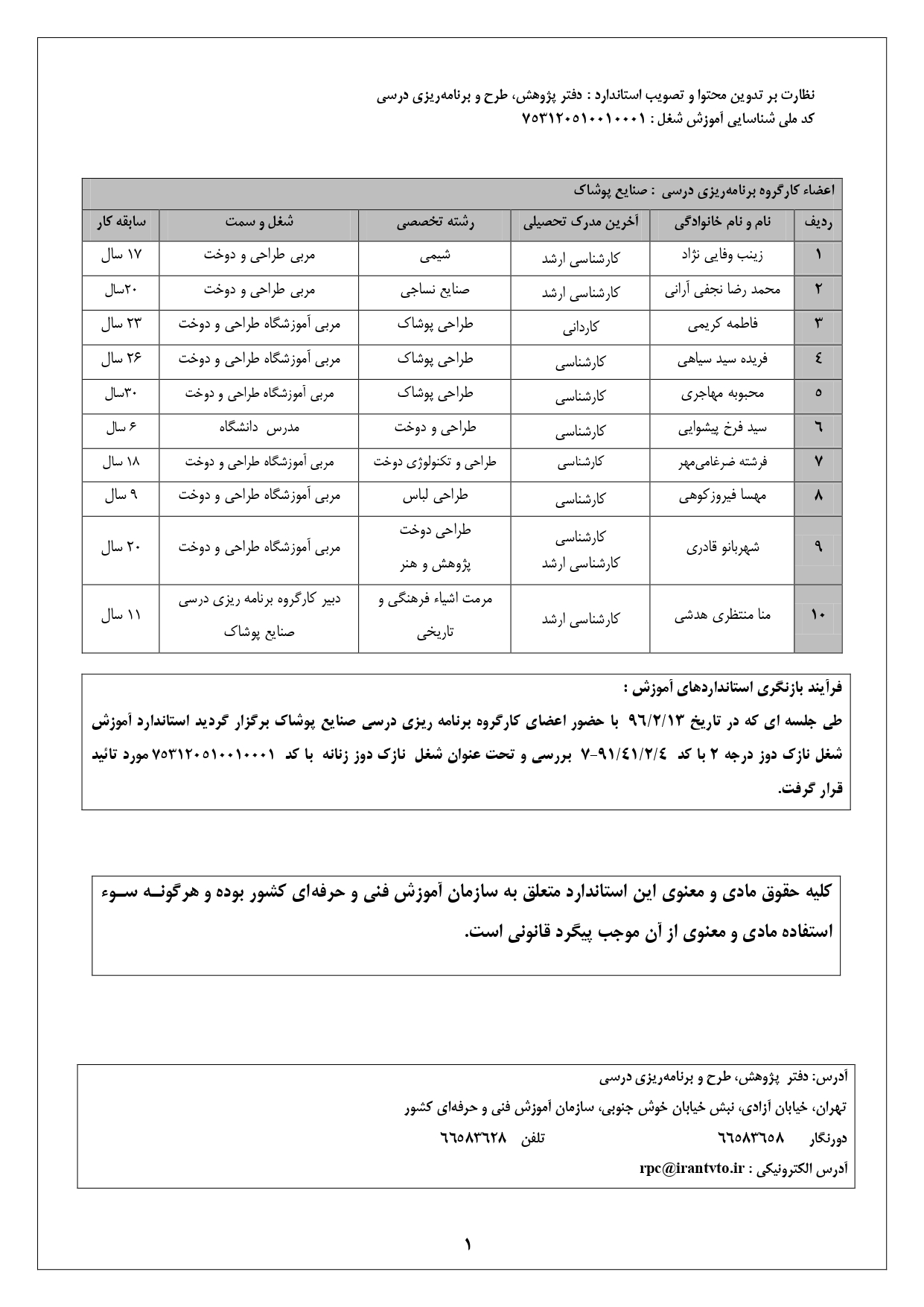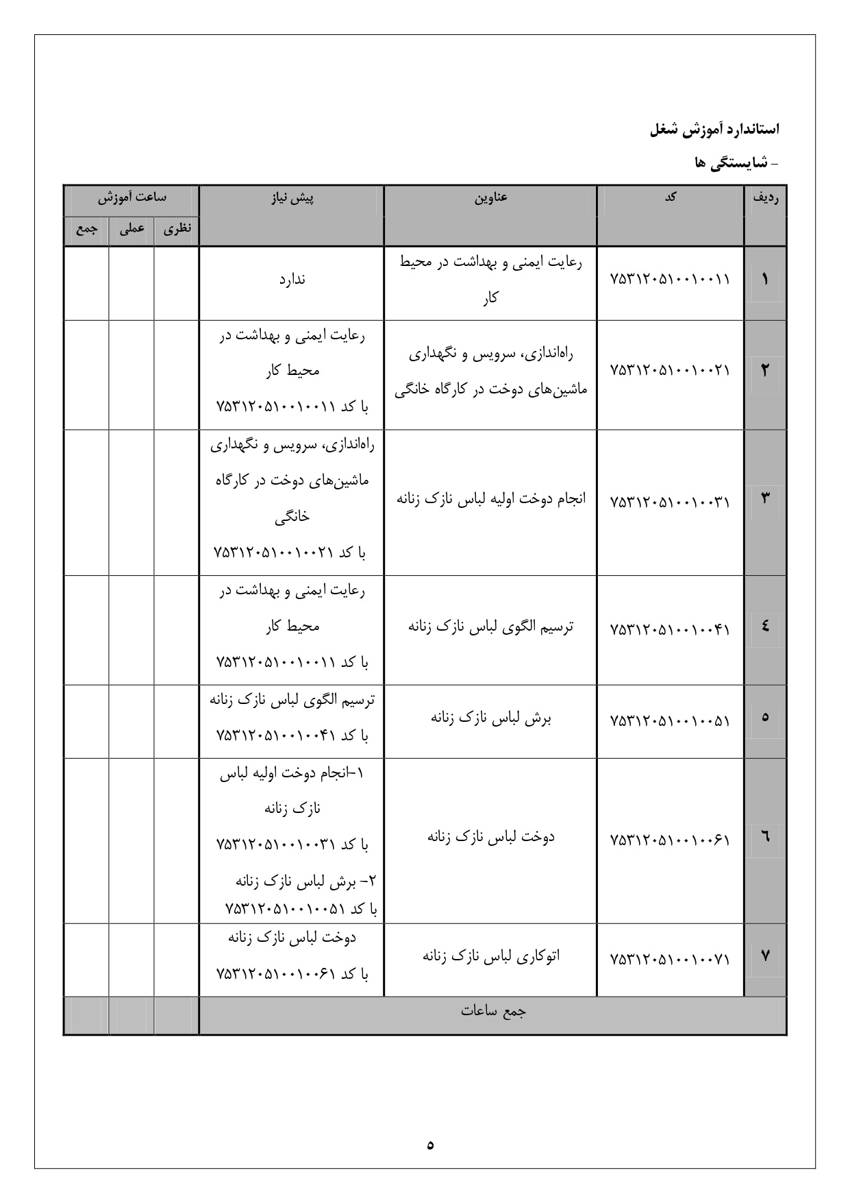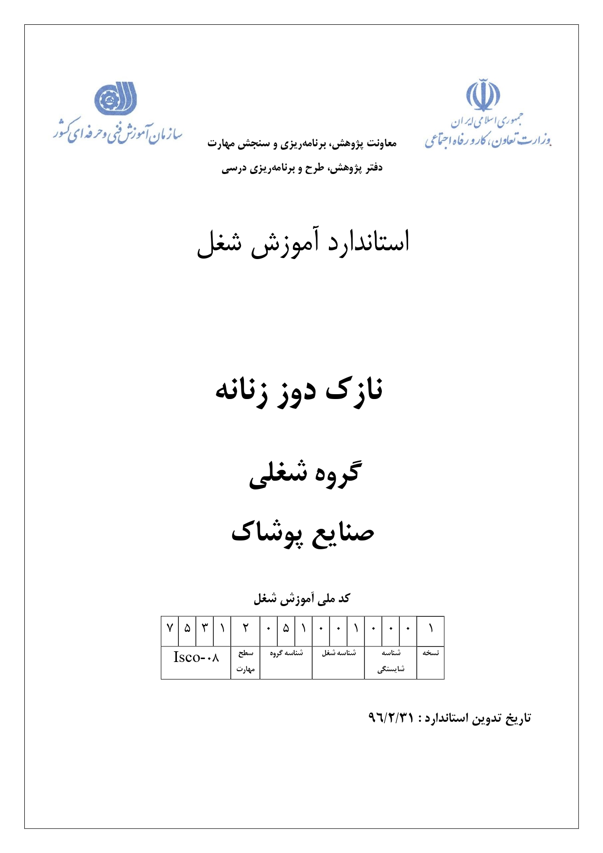 کد ملی آموزش شغل 753120510010001
