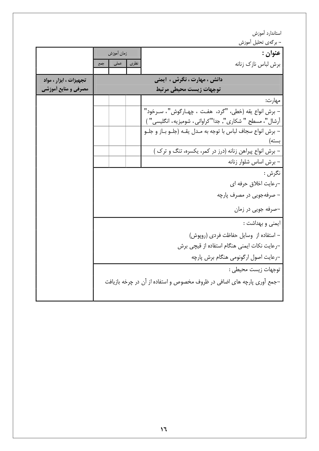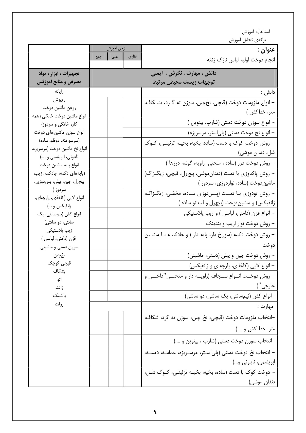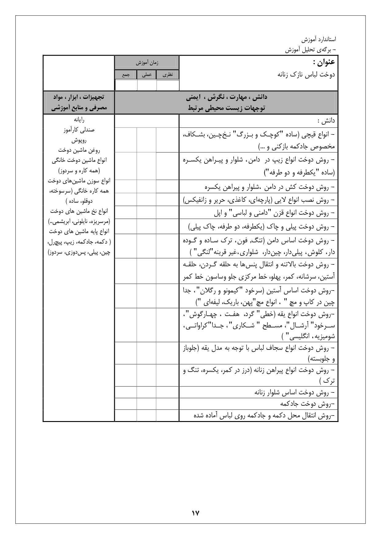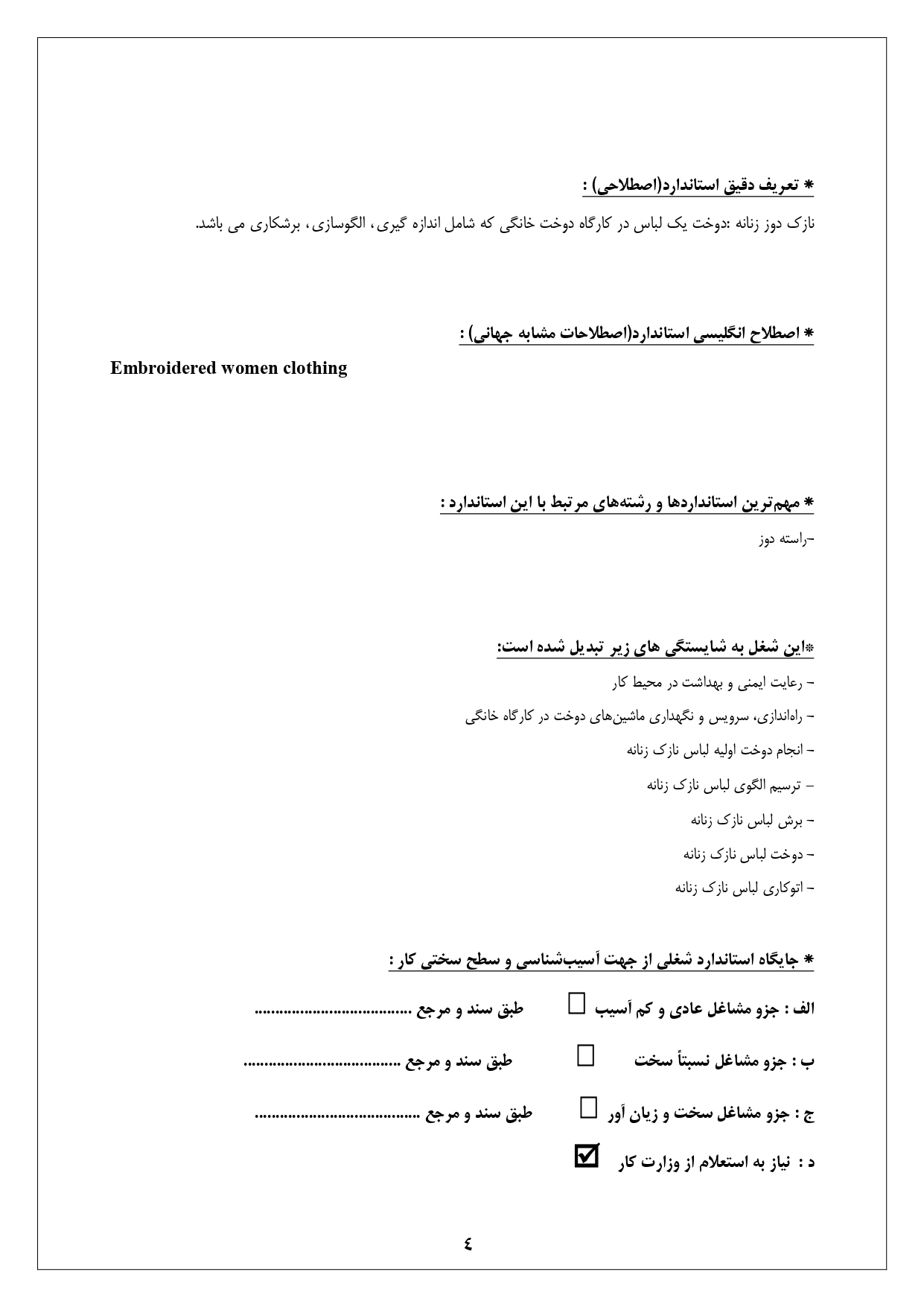 استاندارد آموزش شغل نازک دوز زنانه