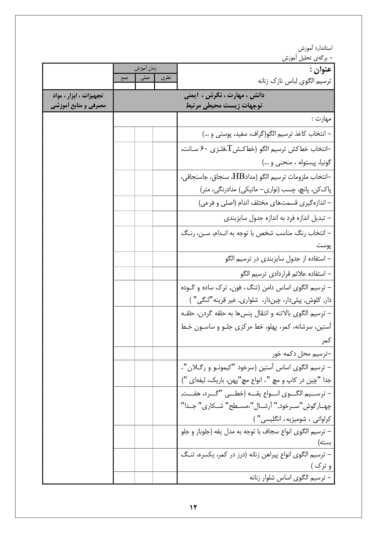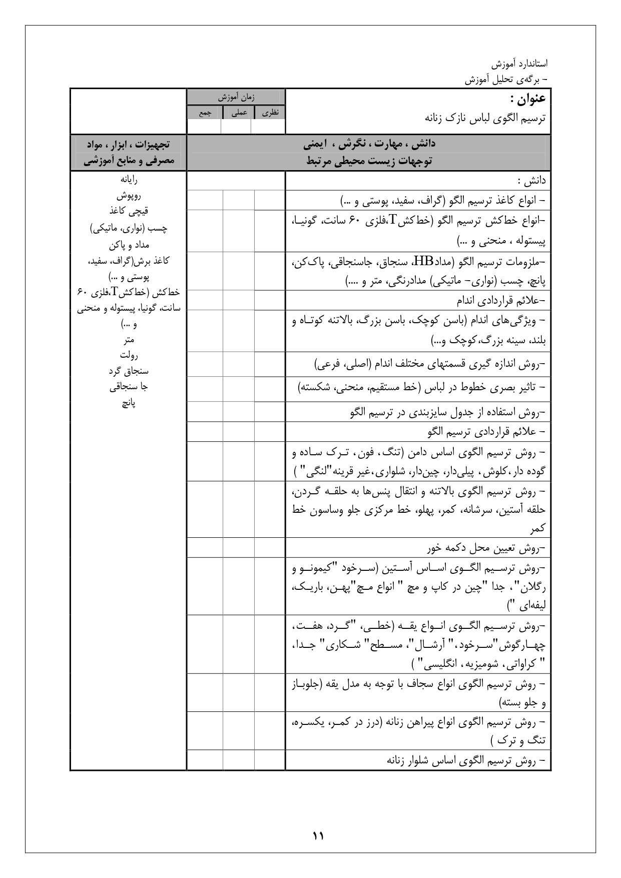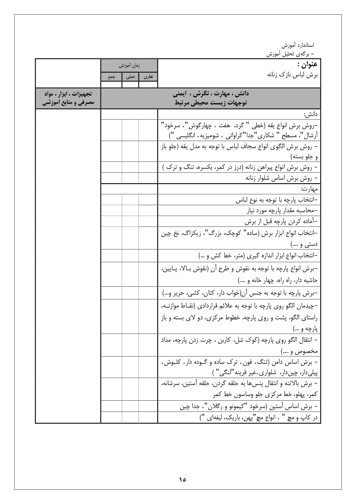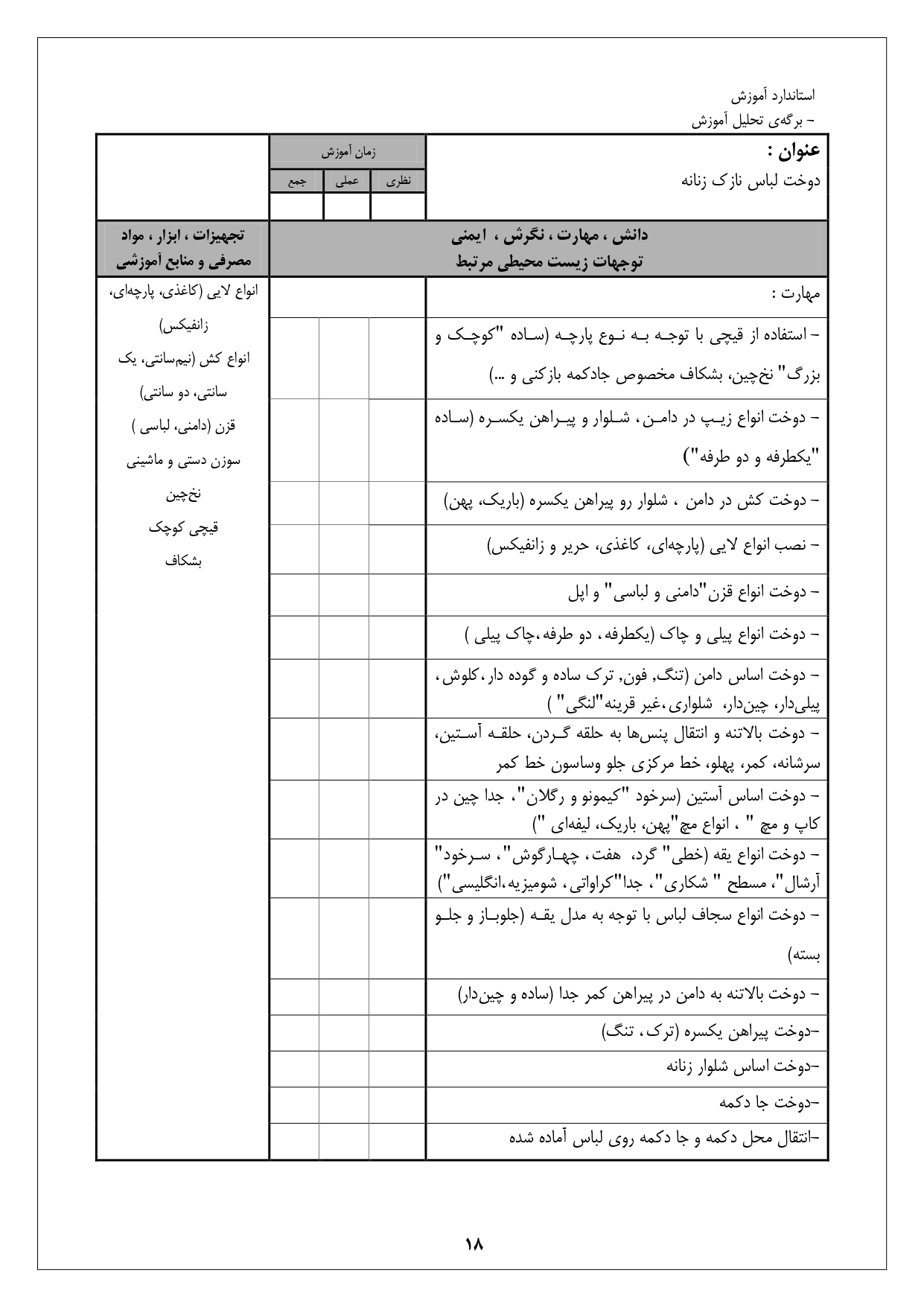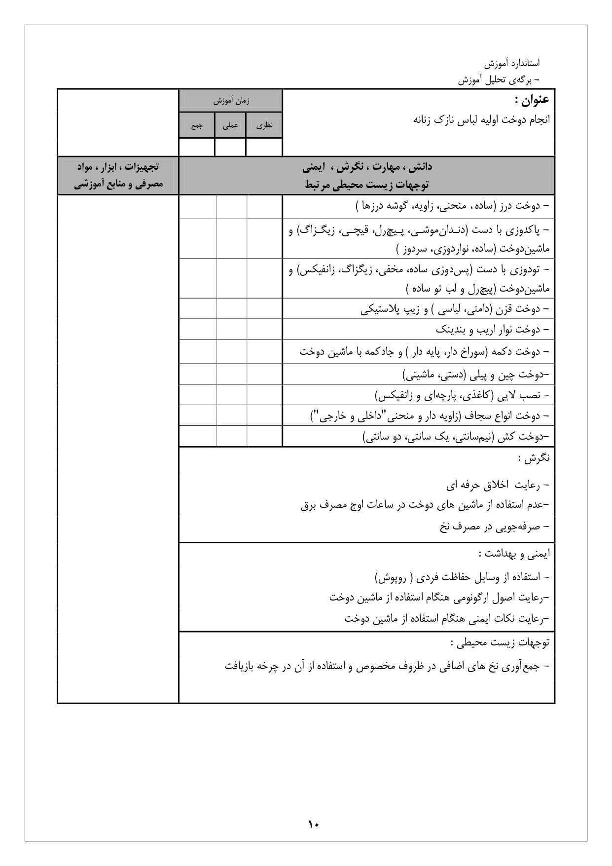 استاندارد آموزش شغل نازک دوز زنانه