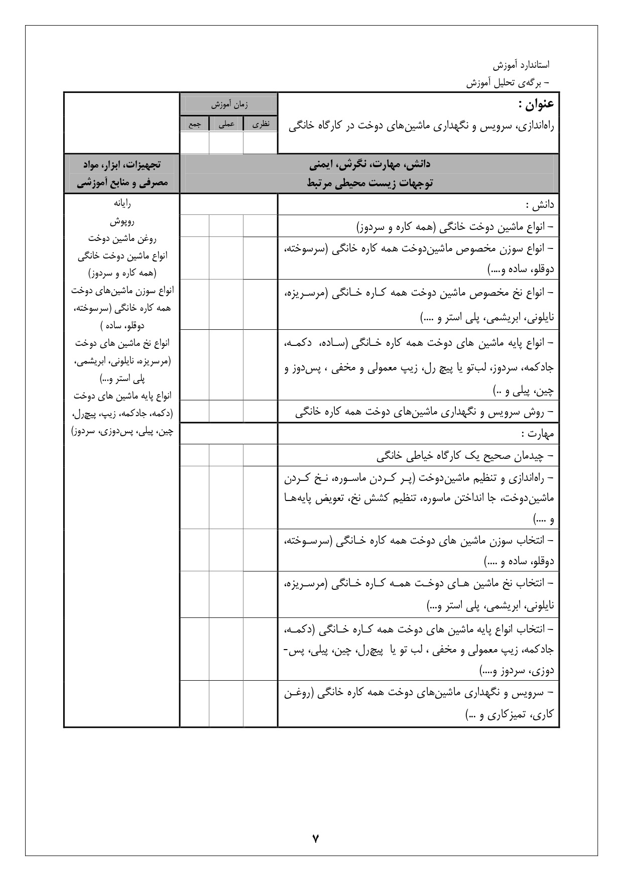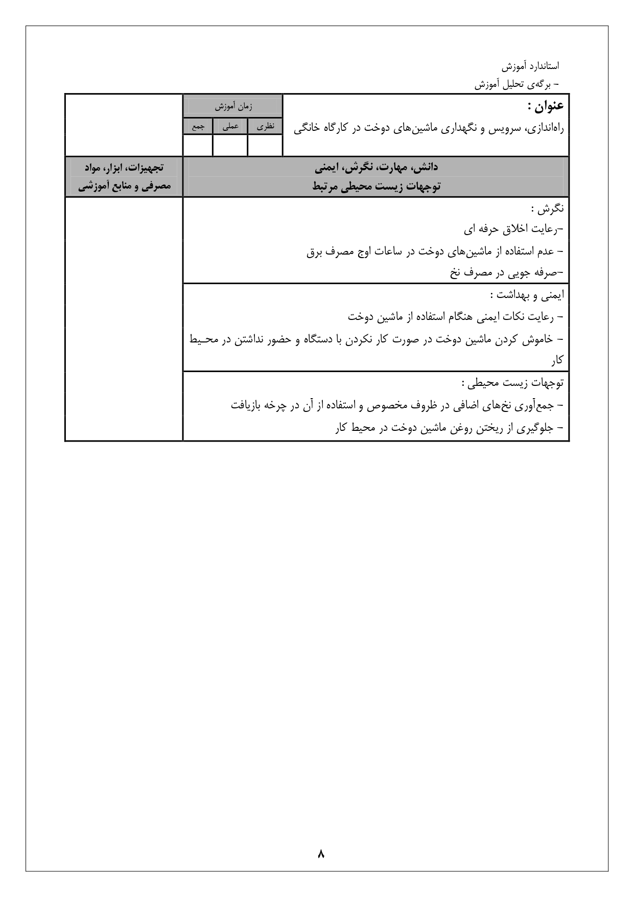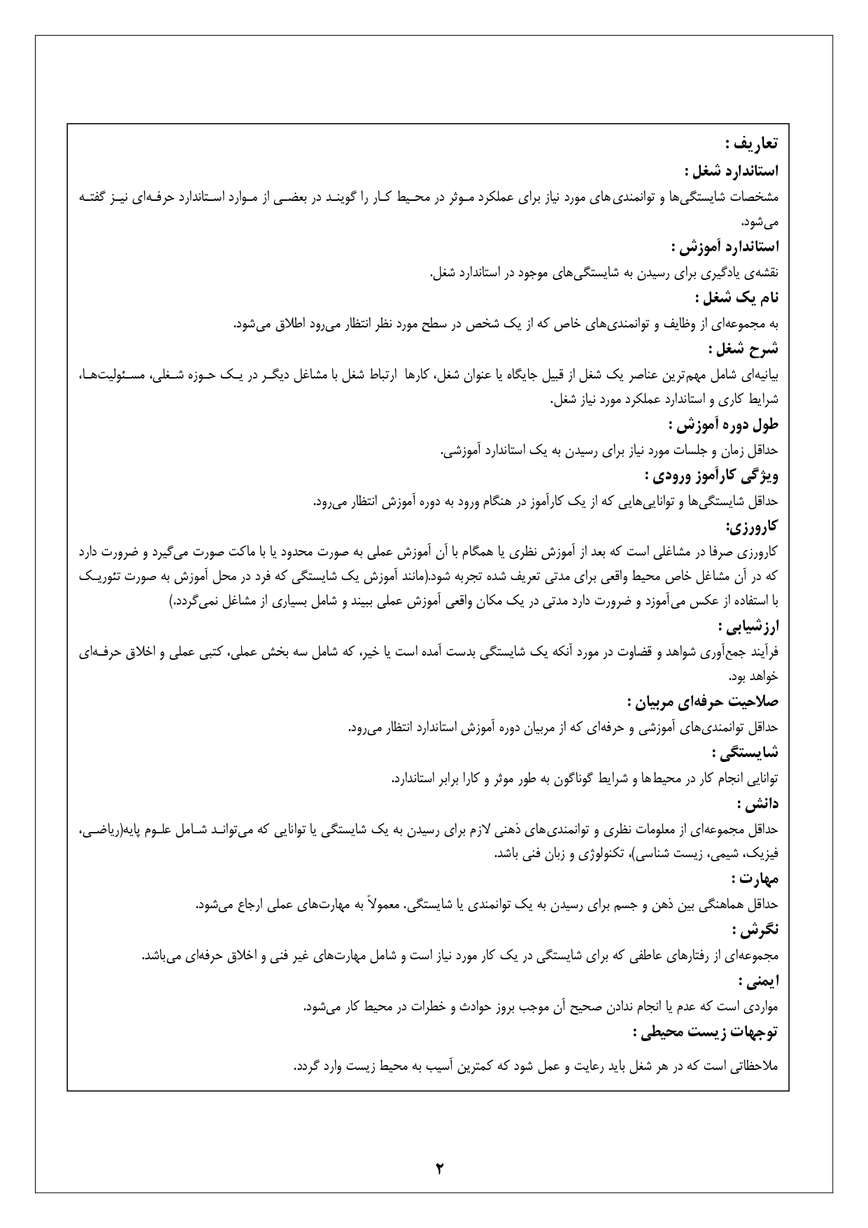 شرح استاندارد آموزش شغل: