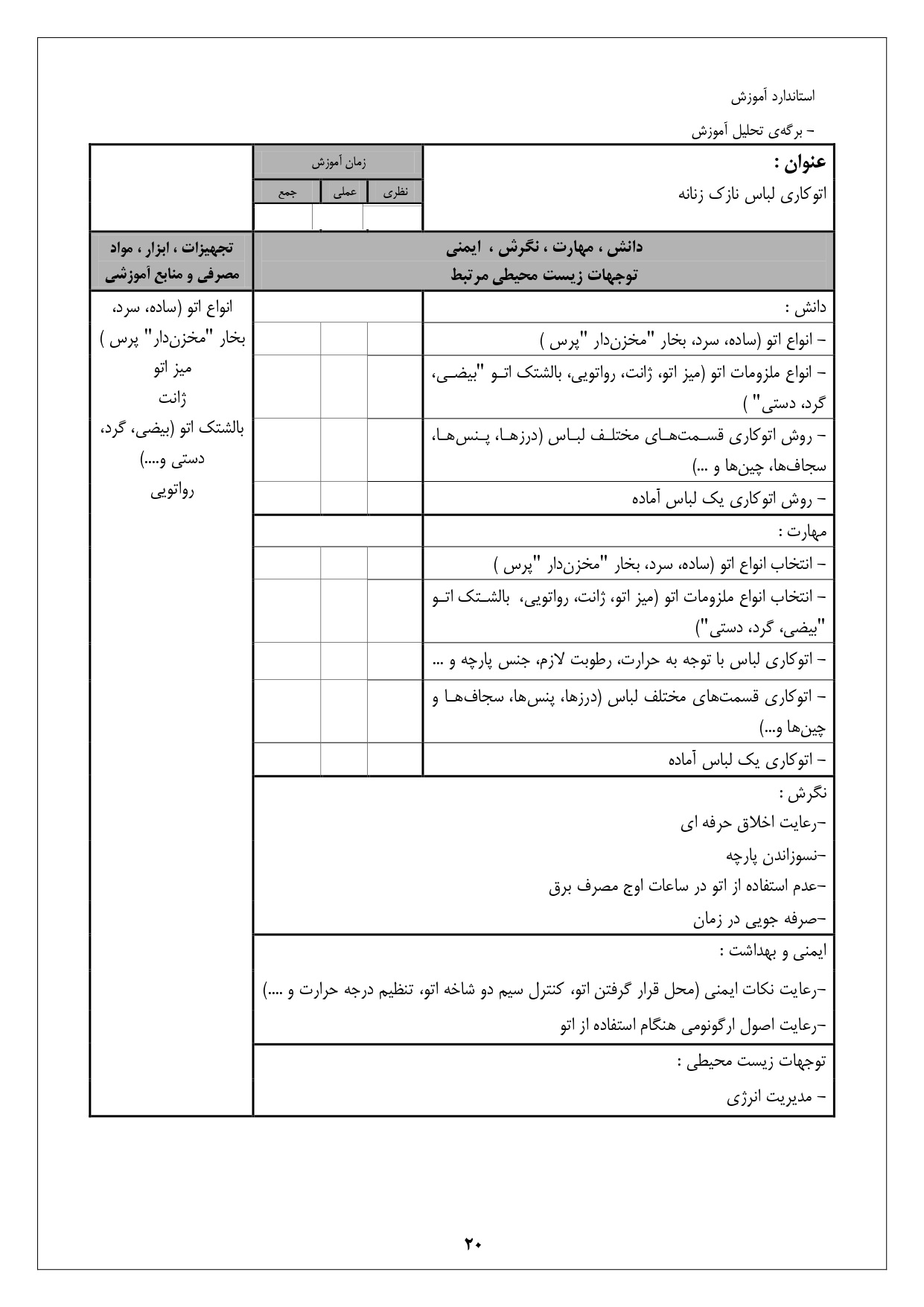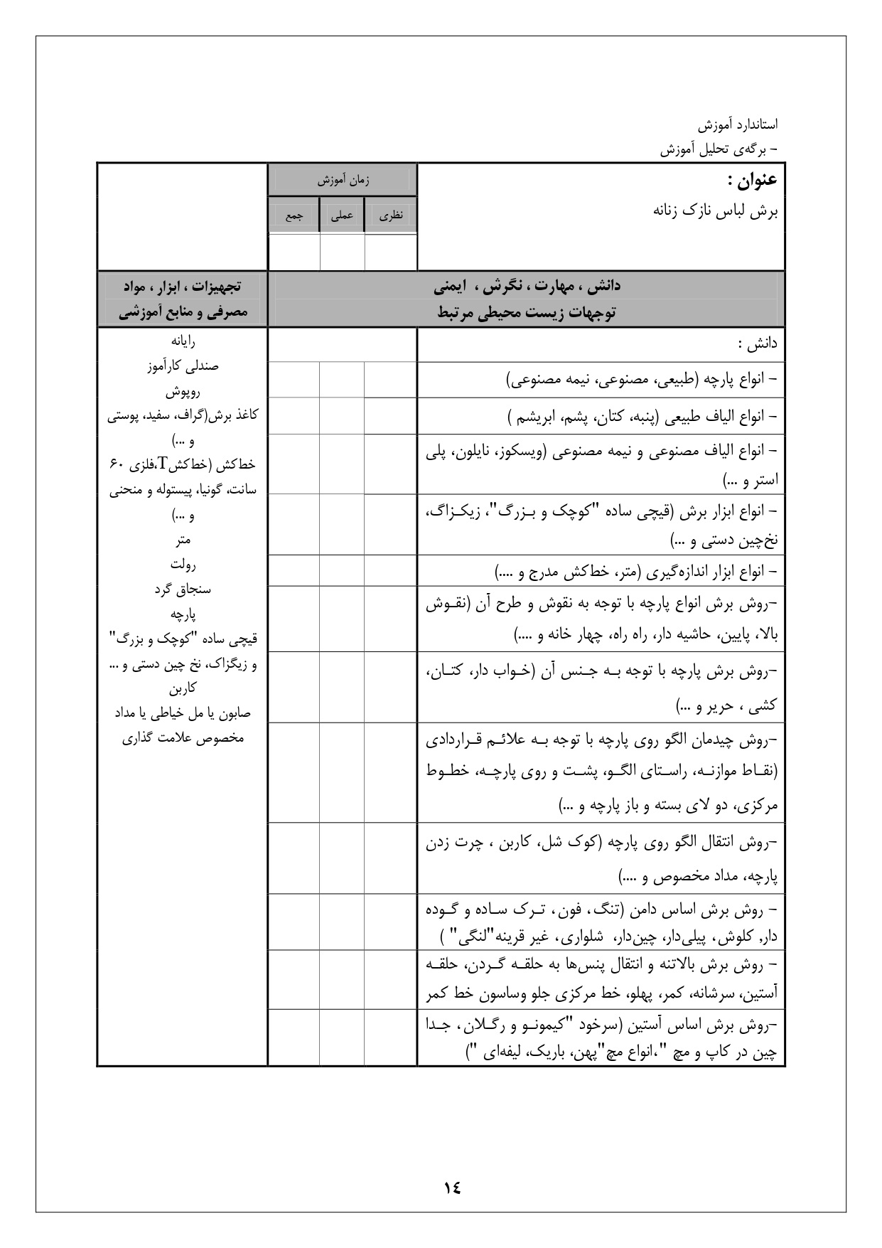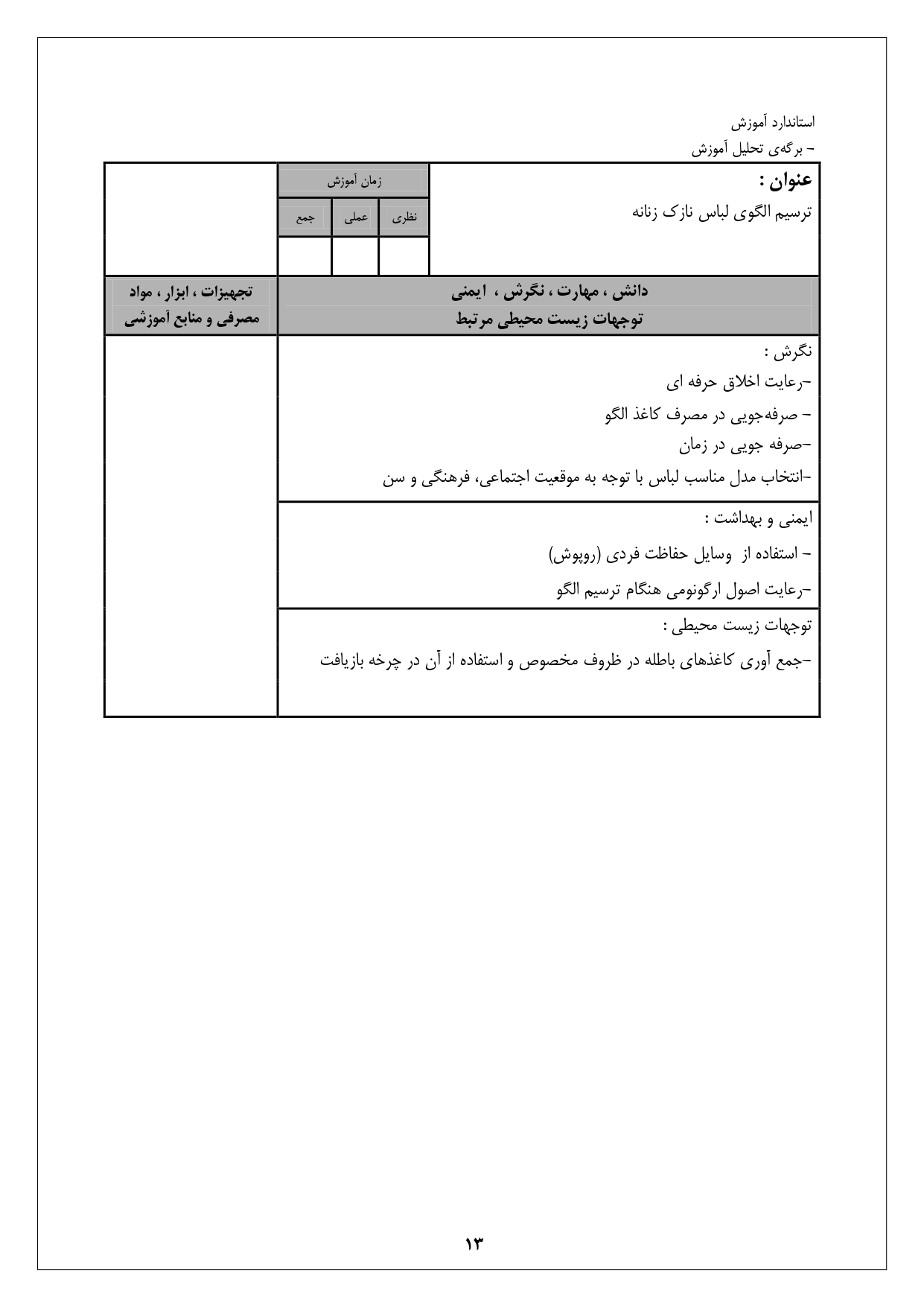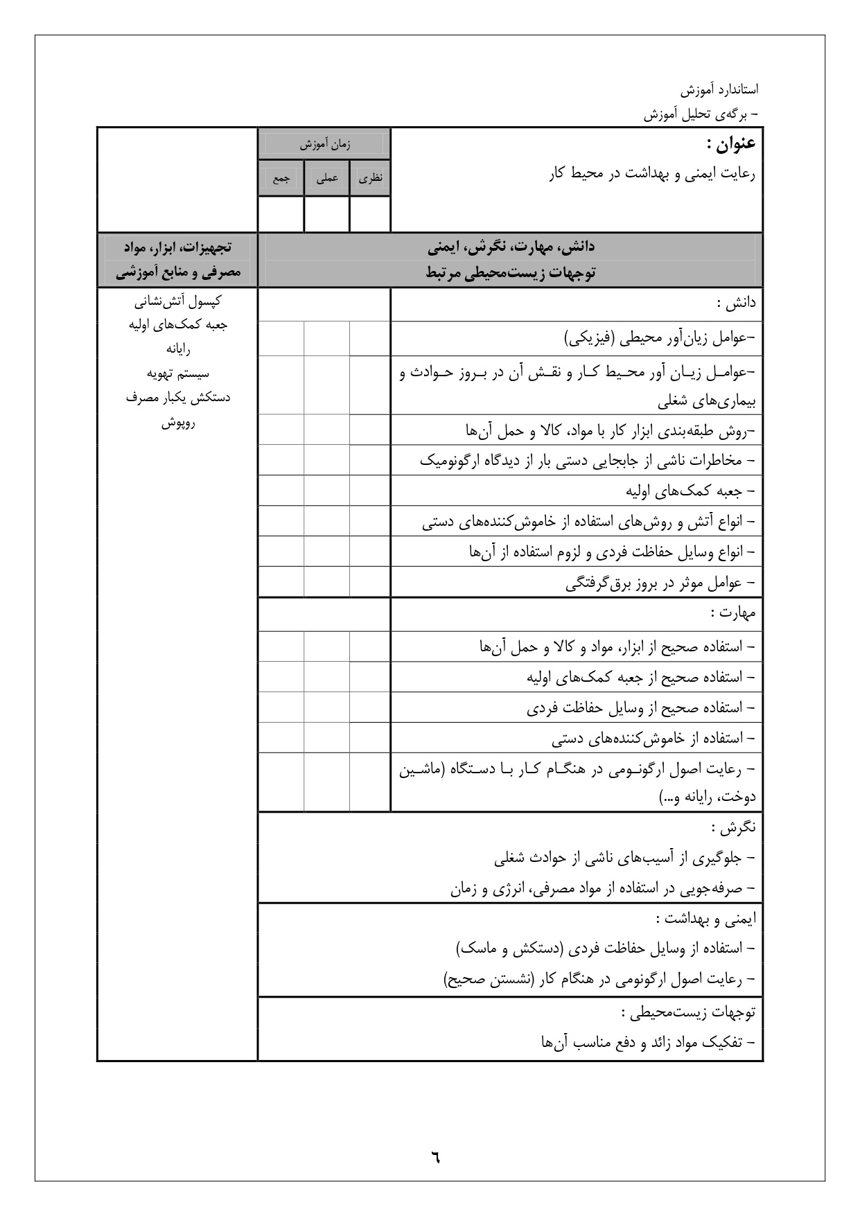 شرح استاندارد آموزش شغل: